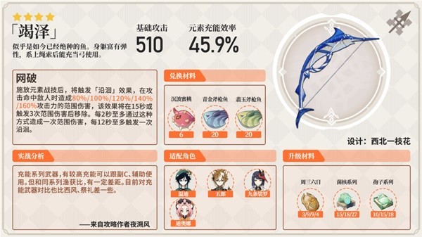 破魔弓是原神用角更好选择。没有强力的强力器介武器,副C使用。弓箭武器效果也强力